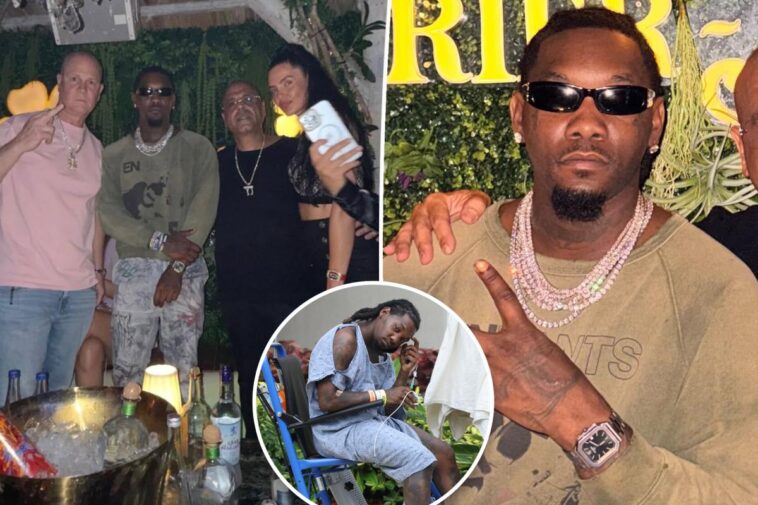 Offset, who was shot in the leg, was taken to a nearby hospital. The next day, he was photographed smoking a cigarette outside the healthcare facility while seated in a wheelchair.