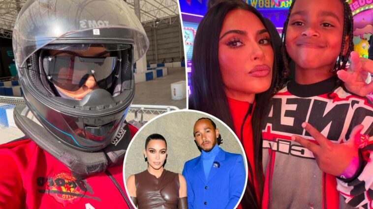 Kim Kardashian channels boyfriend Lewis Hamilton in racing gear during family getaway to Tokyo