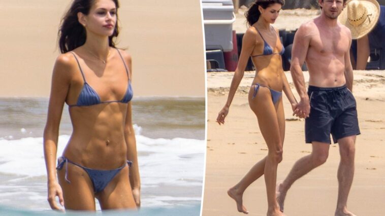Bikini-clad Kaia Gerber and Lewis Pullman soak up the sun during Mexico getaway