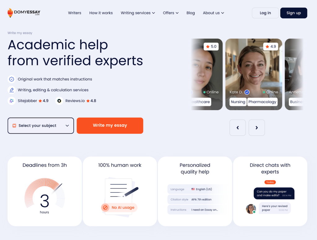 Budget-conscious students often appreciate how DoMyEssay delivers strong academic support without inflated pricing. As a platform known for its best custom paper writing service standards, it maintains a strict no-AI, no-plagiarism policy. Every paper is written from scratch by native English-speaking experts who understand academic tone and clarity. Writer credentials are carefully verified, ensuring that only professionals with Bachelor’s, Master’s, or Doctorate degrees handle assignments.